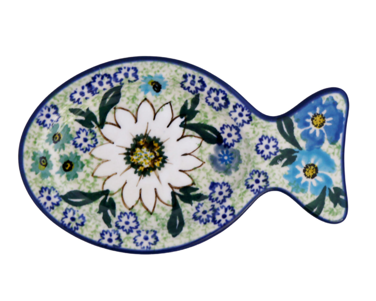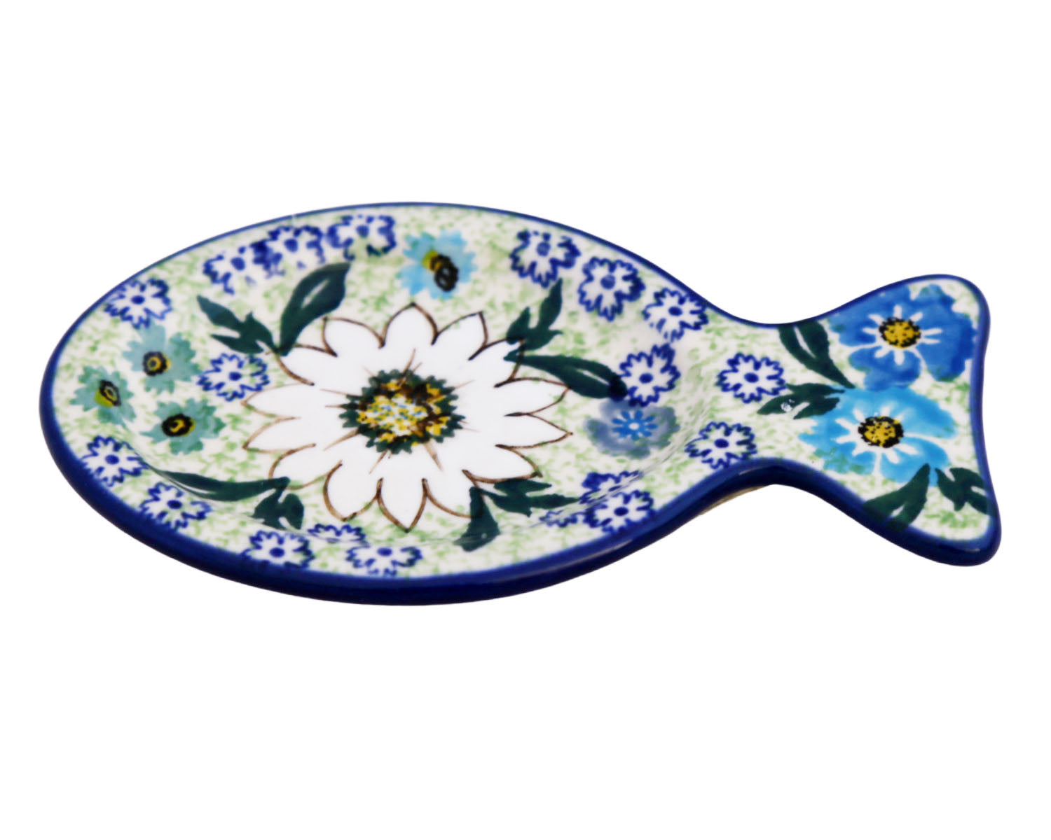 These little Polish pottery "fish dishes" are precious. The "tail" acts as a perfect handle. Use them for condiments, lemon wedges, tasting plates for appetizers, tea bags, spoon rests... the list goes on and on.